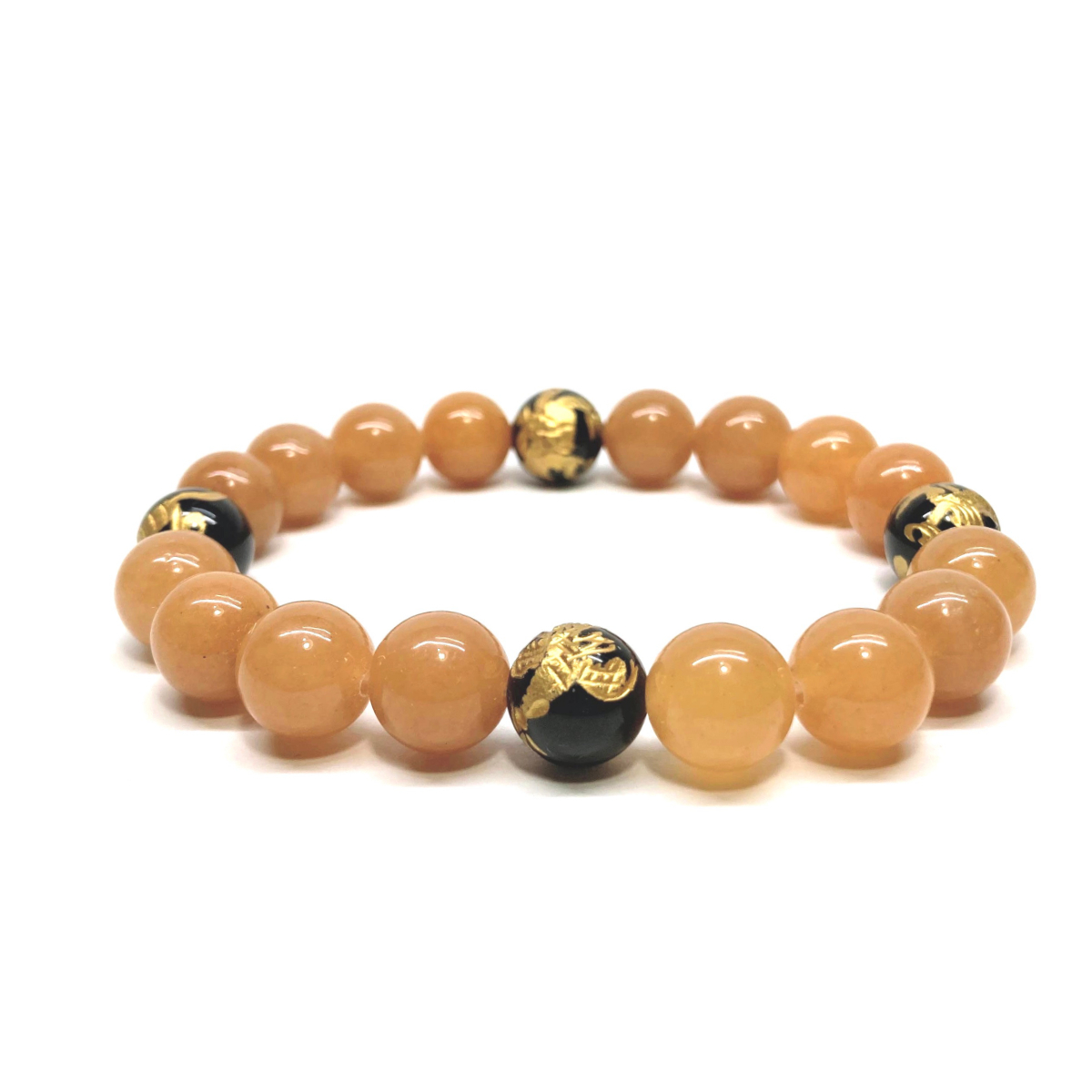 - 10mm 四神獣金彫オニキス×レッドアベンチュリン パワーストーン ブレスレット天然石 運気上昇 開運 金運 恋愛 青龍 白虎 玄武 朱雀 ☆