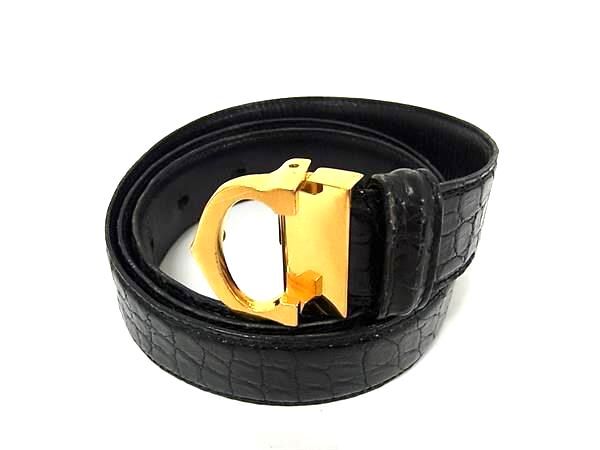 > 1円 ■極上■本物■ Cartier カルティエ マストライン クロコダイル ゴールド金具 ベルト ビジネス 紳士 メンズ ブラック系 FP8152