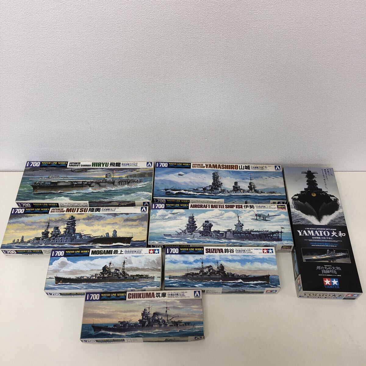 - 8点セット 未組立 AOSHIMA 他 1/700 WATER LINE SERIES 戦艦 プラモデル まとめ 鈴谷 筑摩 伊勢 飛龍 大和 最上 陸奥 山城 251105Y04