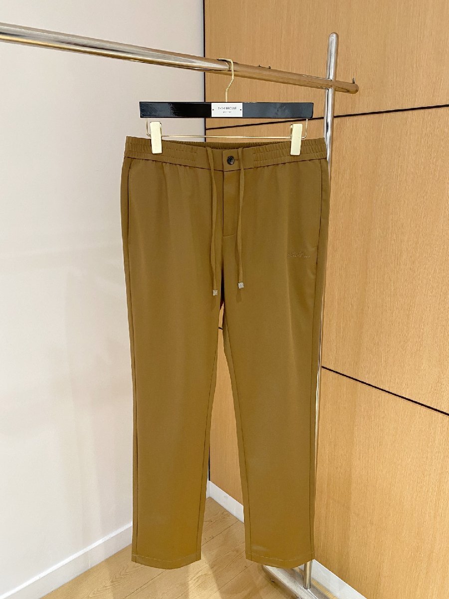 > ブラウンL●数量限定【送料無料】Loro Pianaロロピアーナメンズ リネンブレンド ドローストリング カジュアルパンツ, ストレートフィット