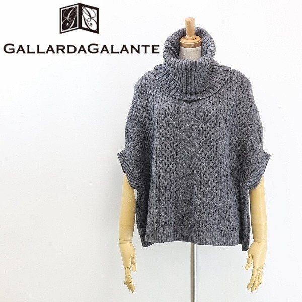 - 【HA903】美品◆GALLARDAGALANTE ガリャルダガランテ スヌード付 ニット アラン ポンチョ グレー F