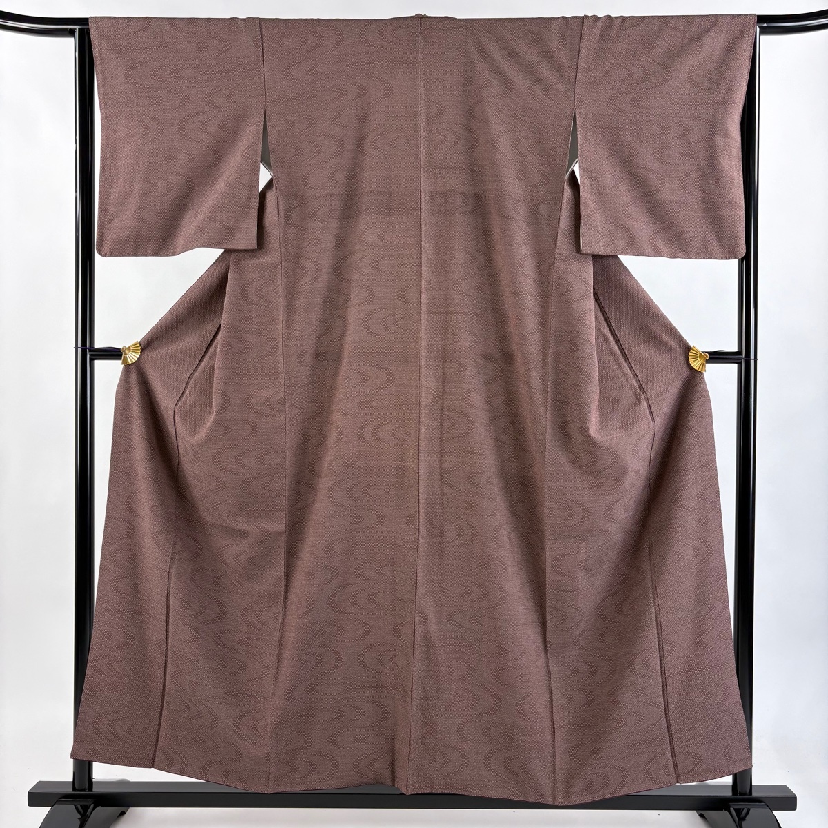 > 【美品】 小紋 身丈156.5cm 裄丈65cm M 袷 流水 亀甲絣 薄小豆 正絹 秀品 【中古】