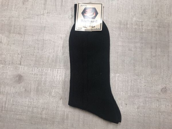 > 新品 オールド レトロ Richard LEG KNIT ワキタ靴下 ウール混 ヘリンボーン ジャガード ロング ソックス 靴下 メンズ 日本製 24-26cm 黒