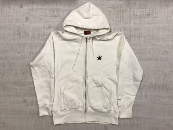 - ビーケーエスカナガワスタイル BKS Kanagawa Style マリファナ刺繍 サーフ ローカル ストリート スウェット ジップパーカー メンズ S 白