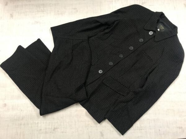 - ville d'azur ビルダジュール レトロ オールド トラッド 刺繍ドット スカートスーツ 上下セットアップ レディース 日本製 ウール100% 42 黒