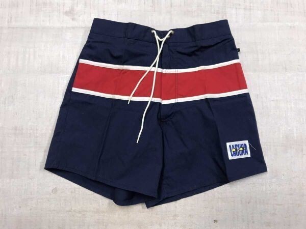> LAGUNA ラグーナ レトロ オールド 古着 バイカラー 配色 水陸両用 スイム サーフ ショーツ パンツ ボトムス メンズ 日本製 L 紺