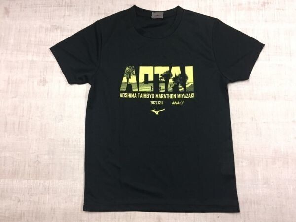 > ミズノ MIZUNO製 宮崎県 青島太平洋マラソン 2022年 マラソン大会 参加 ANA協賛 ドライメッシュ 半袖Tシャツ メンズ XS 黒