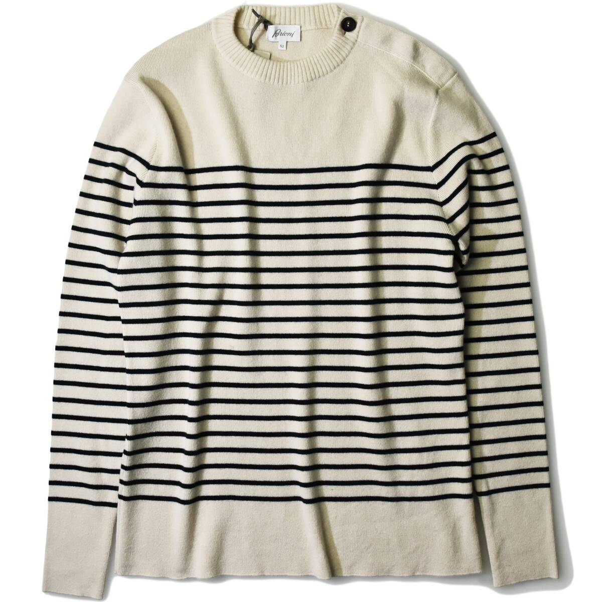 > 34,6万【Brioni ブリオーニ 新品】最上級カシミア100%厚手ニット◇温かみと清潔感が同居する上品配色◇ボタンショルダーカシミアセーター