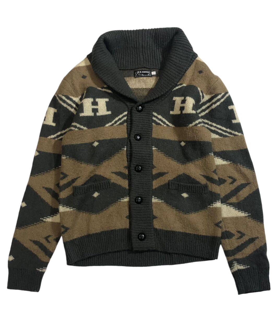 - ■ HOLLYWOOD RANCH MARKET ハリウッドランチマーケット ハリラン ■ H ロゴ ネイティブ 編柄 モヘヤ混 ニット カーディガン 3