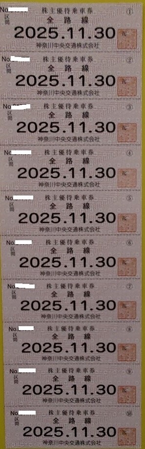 - 神奈川中央交通 株主優待乗車券10枚+割引券冊子