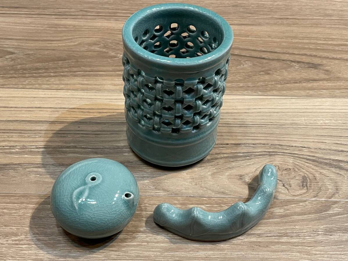 - 高麗青磁 海日窯 朴東植 透かし彫り 桐箱入り