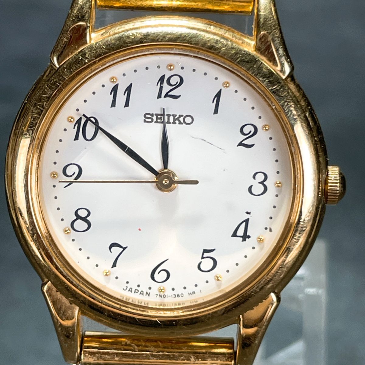 - SEIKO セイコー 7N01-6880 腕時計 アナログ クオーツ 3針 ホワイト文字盤 メタルバンド ゴールド ラウンド 新品電池交換済み 動作確認済み