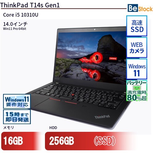 - 中古 ノートパソコン Lenovo レノボ ThinkPad T14s Gen1 20T1S03900 Core i5 メモリ:16GB 6ヶ月保証