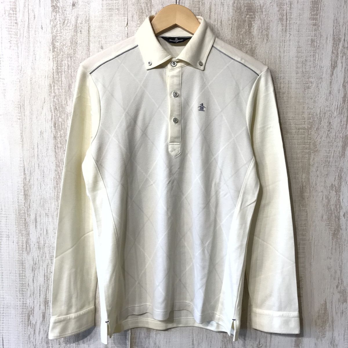 - 986☆【ゴルフウェア アーガイル 長袖 ボタンダウンポロシャツ】Munsingwear マンシングウェア クリーム M