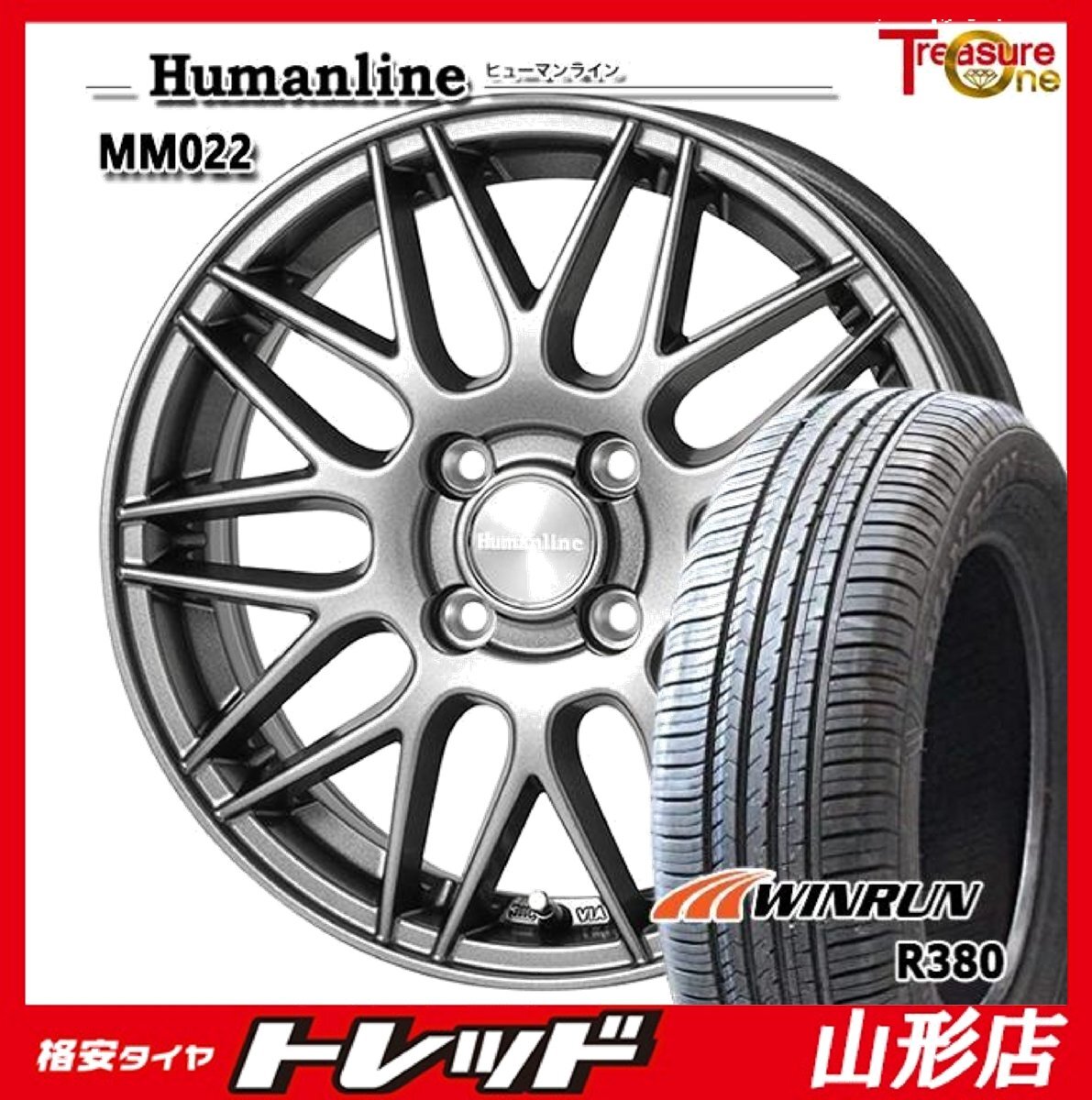 > 山形店 新品 夏タイヤホイールセット ヒューマンライン MM-022 14インチ 5.5j 4H100 +45 DG ウィンラン R380 165/65R14 2025年製 ルーミー