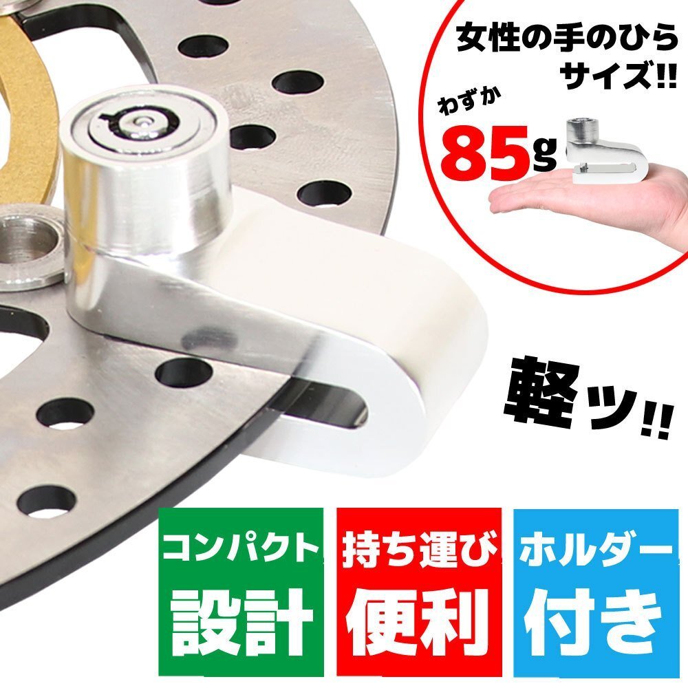 - 汎用 バイク 軽量 小型 携帯 ディスクロック ディスクブレーキロック ブレーキローター シルバー 銀 カンタン お手軽 アルミ 盗難 イタズラ