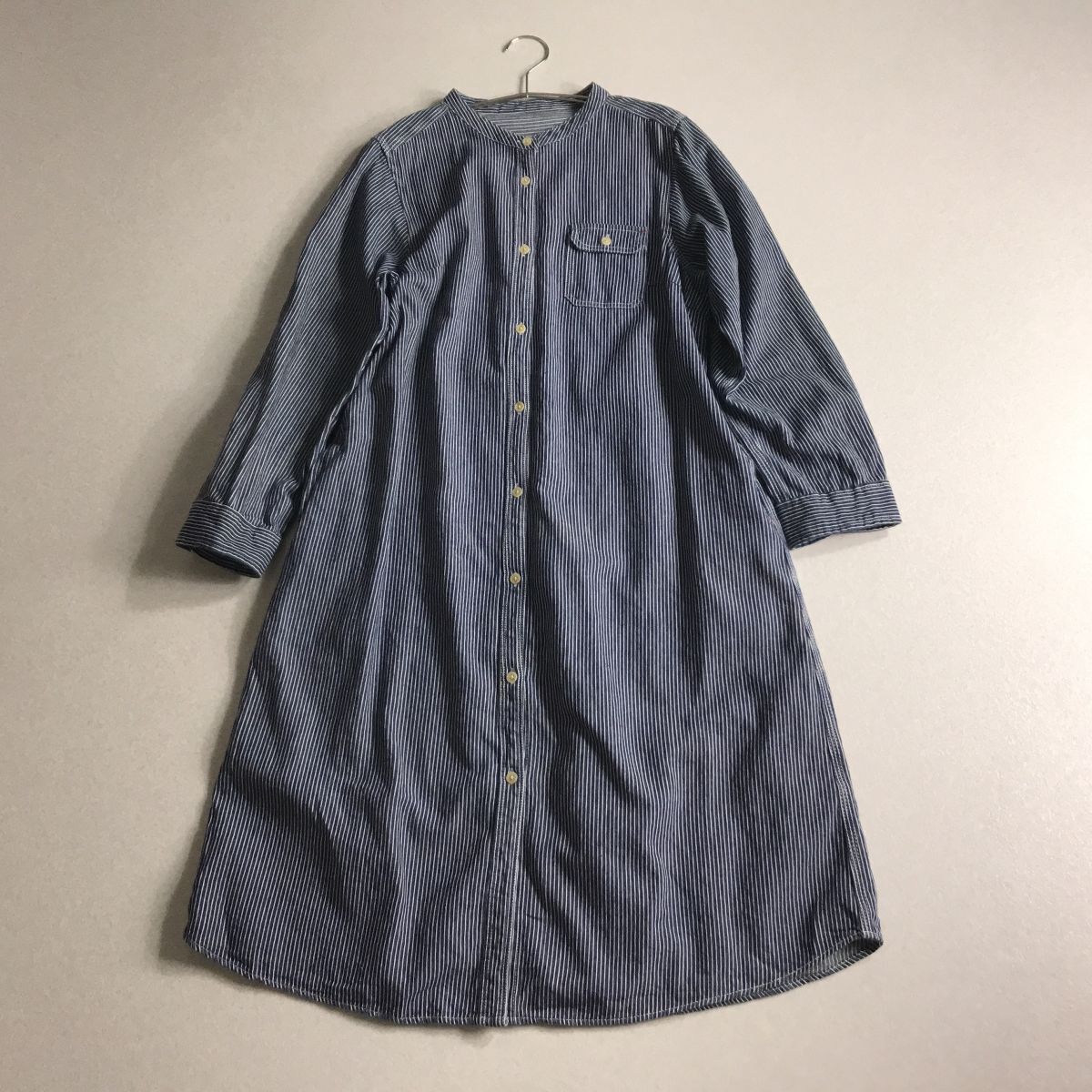 - ☆ 100円スタート ヒッコリーデニム ストライプ バンドカラー ワンピース 大きいサイズ 3L