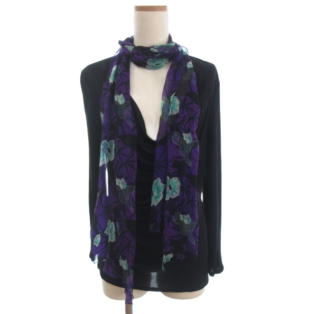 > ヴェルサーチ ヴェルサーチェ カットソー ブラウス 長袖 ドレープ シルク混 329820 フラワープリント スカーフ風タイ 黒 10