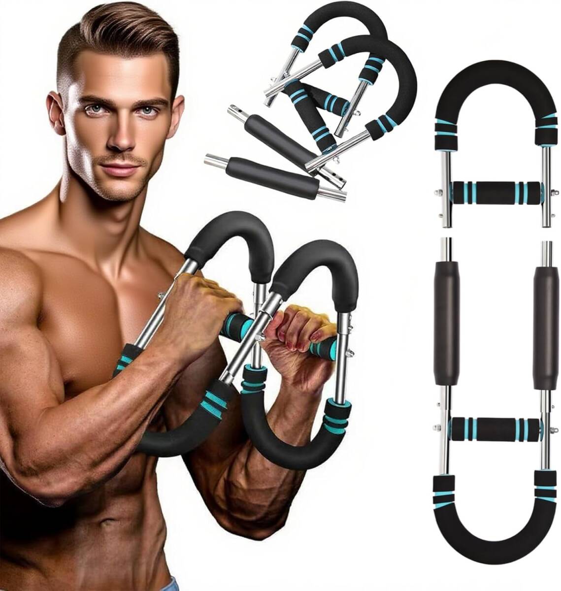 - アームバー 胸筋トレーニング器具 筋トレ器具 自宅 3段階負荷調整 (30~50KG) 分解収納 持ち運び便利 日本語説明書付き