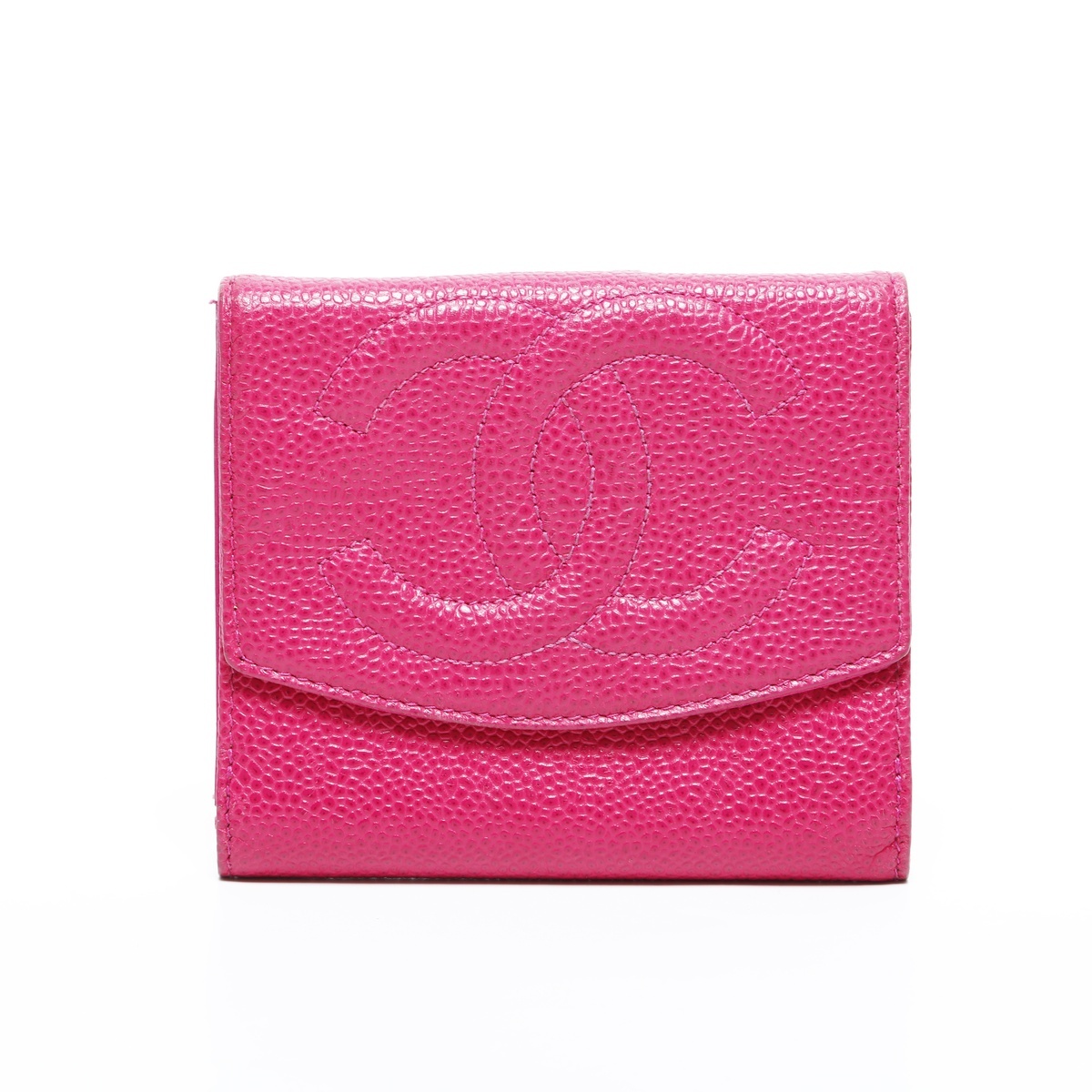 - シャネル CHANEL 三つ折り財布 4番台 キャビアスキン 1996-1997 ココマーク ピンク