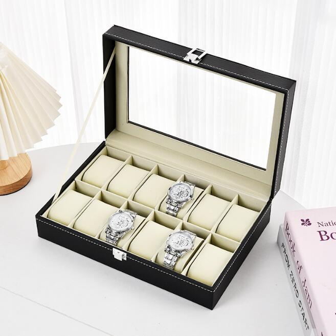 - 人気推薦腕時計 収納ケース 12本用 PU革制 レザー 展示 ウォッチケース ボックス ブラック