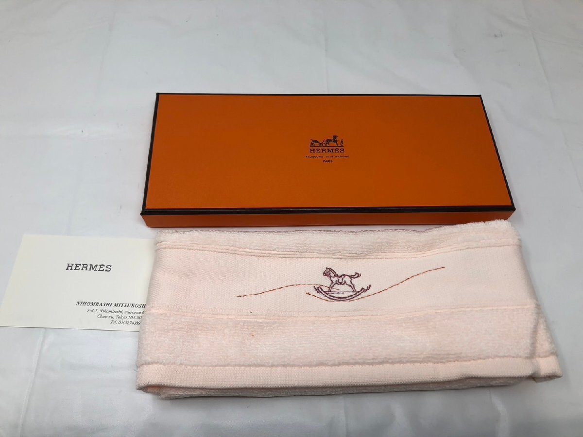 ◆未使用 HERMES エルメス ハンドタオル タグ 箱付 シミ有 保管品◆16168