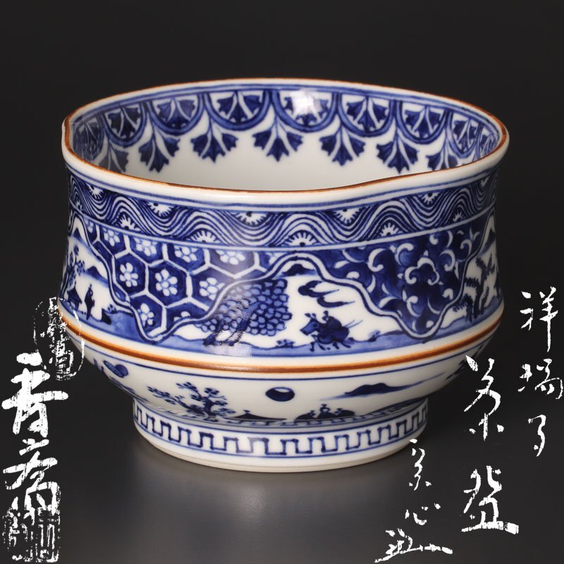 > 【古美味】真葛香斎造『堀内宗心(兼中斎)書付』祥瑞州浜茶碗 茶道具 保証品 u9ZH