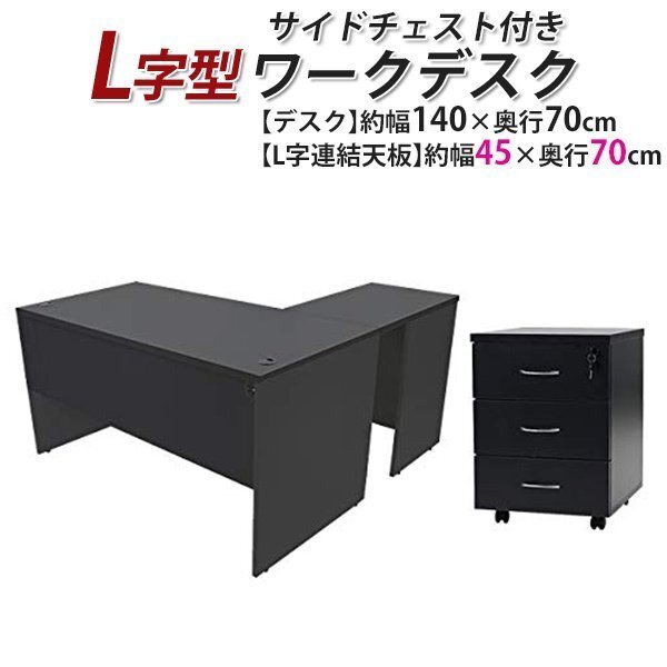- 送料無料 ワークデスク L字型 3段 サイドチェスト 約W140×D140×H73.5 幕板 ゲーミングデスク L字デスク L型 左用 ブラック