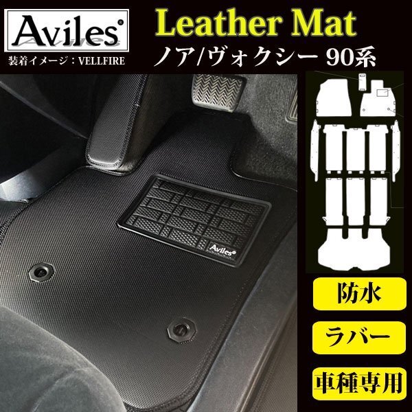 - 【防水レザーマット】トヨタ 新型 ノア ヴォクシー 90系 ハイブリッド 7人乗り コンソールインパネ一体型 ステップ トランク フロアマット