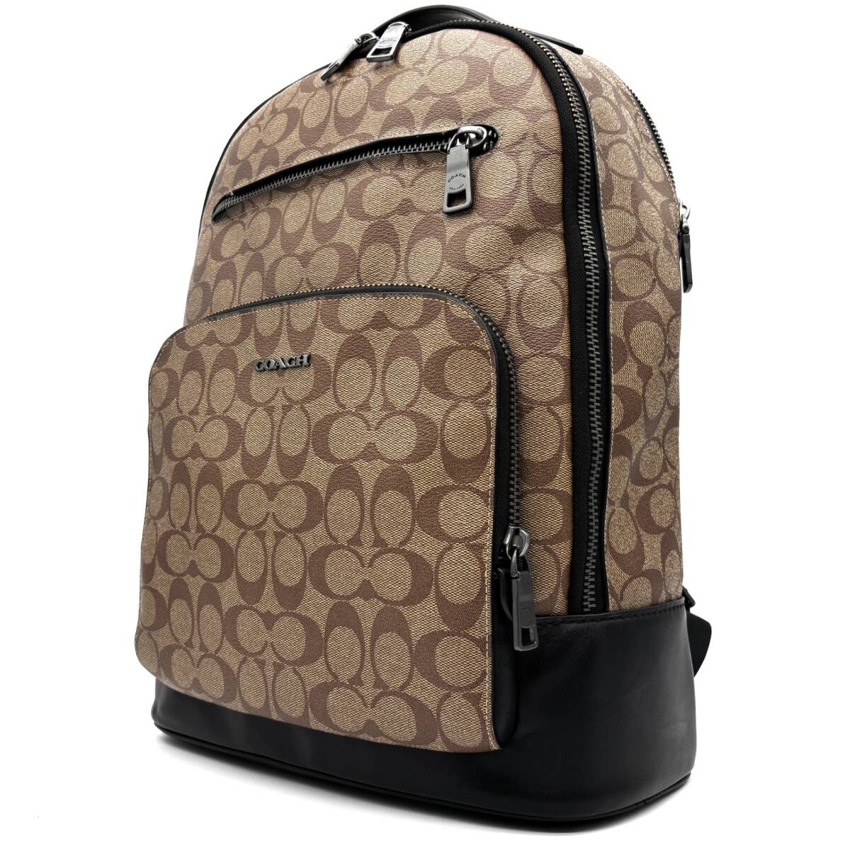 > 現行モデル・極美品 COACH コーチ イーサン シグネチャー バックパック リュック メンズ ビジネス ロゴ 大容量 多収納 ベージュ ブラック