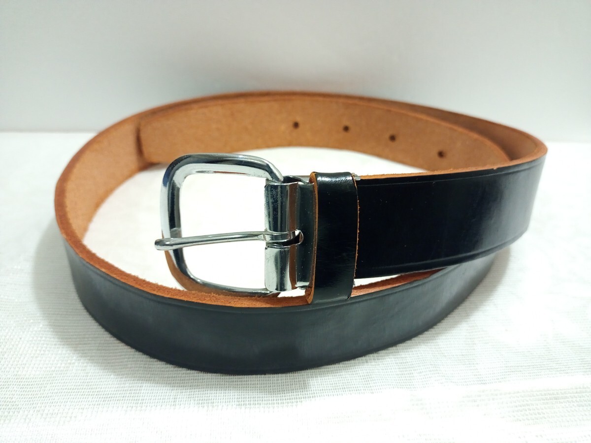 - 一枚革ベルト ロングサイズ ウエスト83cm~104cm 35mm幅 黒色(光沢あり)