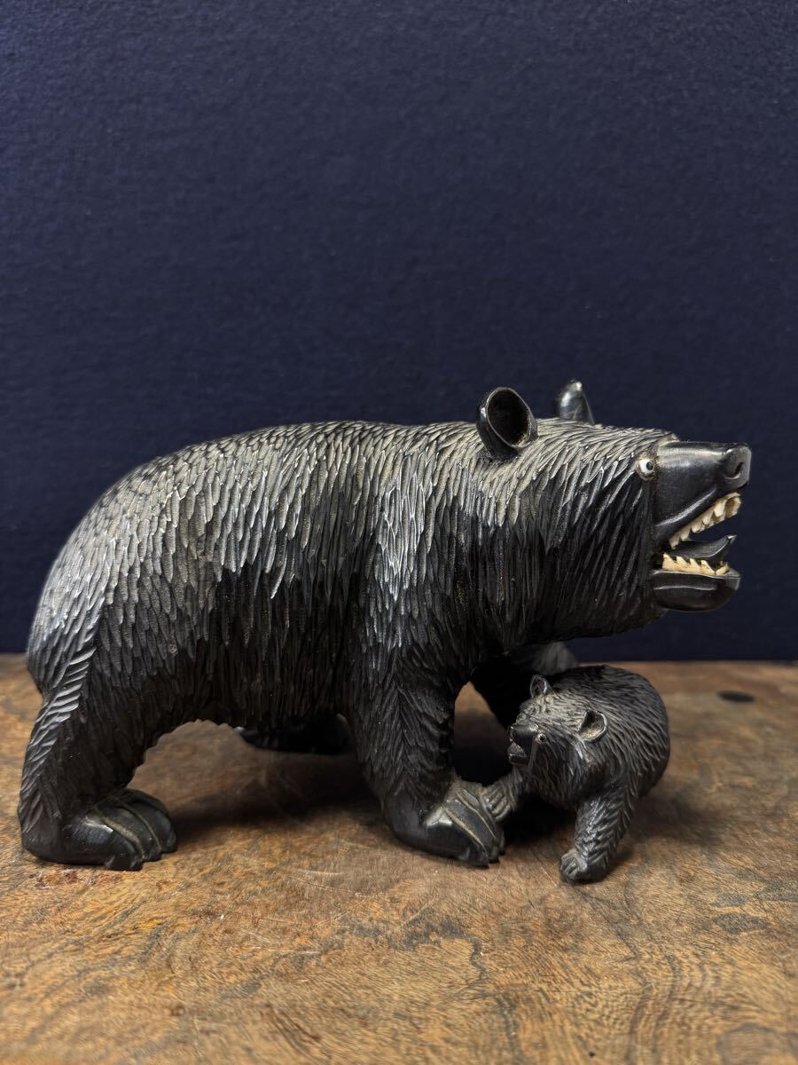 - 木彫り 熊 44年作 熊 置物 木彫り 北海道 木彫り熊 インテリア 木彫りの熊 ガラス目 彫刻 伝統工芸 アイヌ