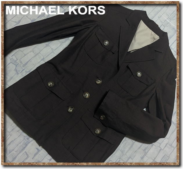 - ☆MICHAEL KORS マイケルコース ベルト付き麻ジャケット 濃茶☆
