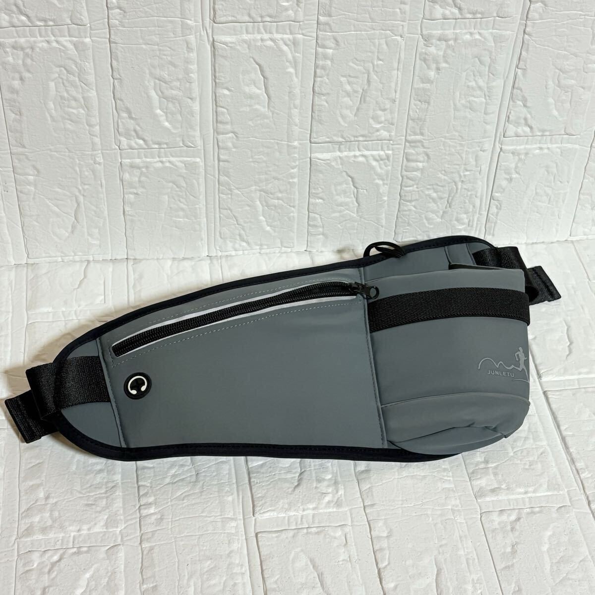 - JUNLETU ランニングポーチ ボトルホルダー付 防水 ウエストバッグ 軽量 グレー 反射素材 スポーツ用