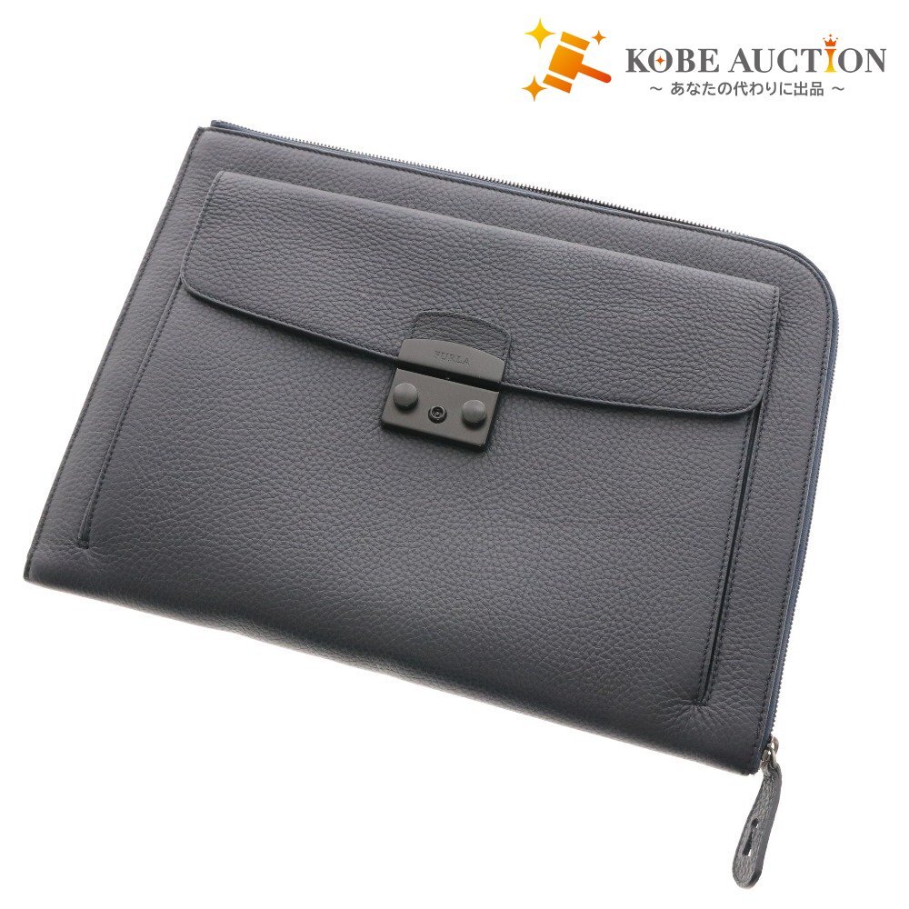 > ■ FULRA フルラ 書類鞄 クラッチバッグ ビジネスバッグ 鞄 ロゴ ファスナー開閉 ポケット イタリア製 メンズ ダークネイビー 袋付き