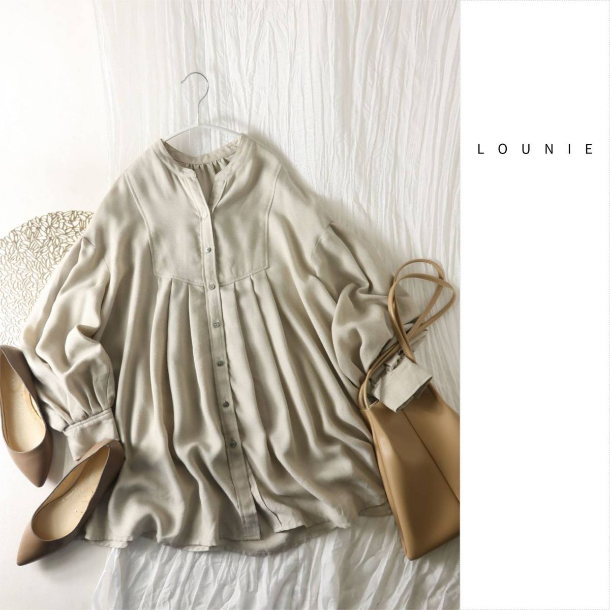 - ルーニィ LOUNIE☆日本製生地使用☆ボリュームスリーブ タックブラウス 36サイズ☆E-M 6291