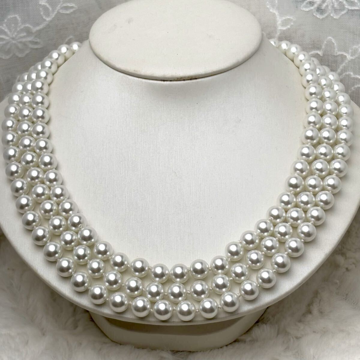 - ロング貝パールネックレス 白蝶貝 パール ネックレス アクセサリー