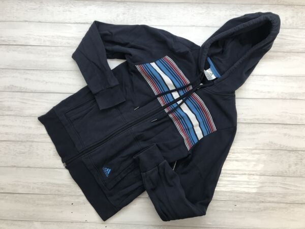 > アディダス adidas スポーツ ストリート トレーニング 古着 パネルボーダー ジップアップ スウェット パーカー レディース 綿100% S