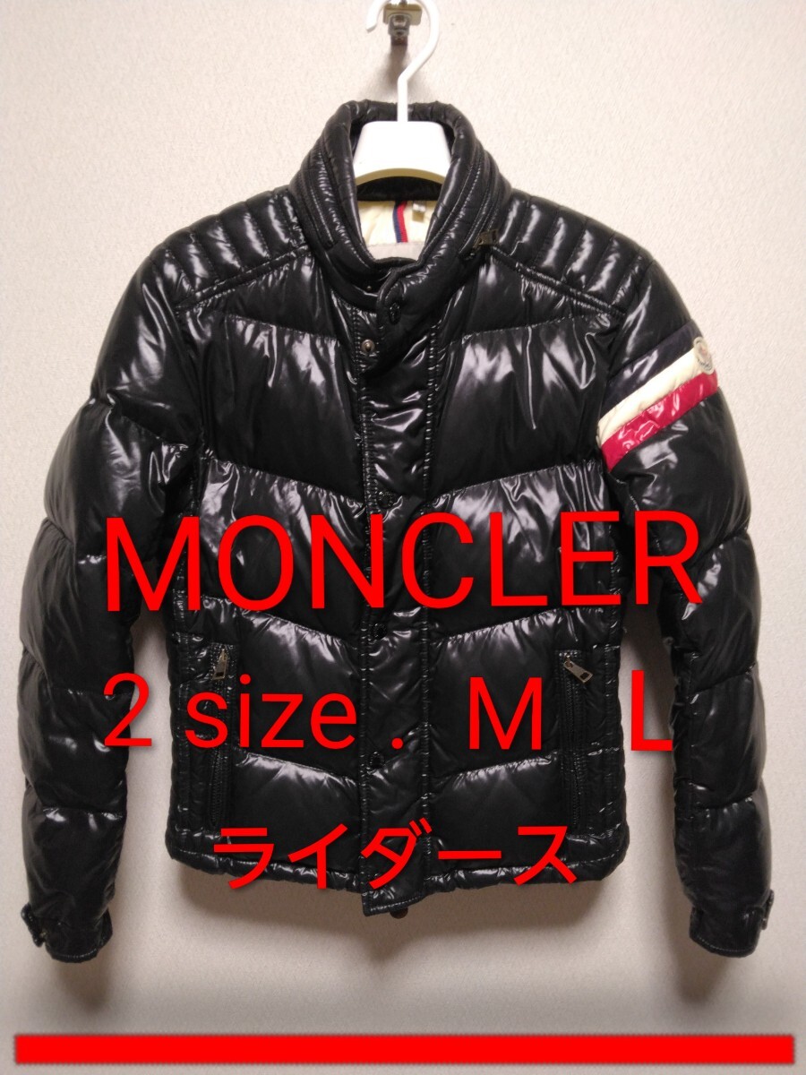 > ※ 綺麗 モンクレール 2●M L 鑑定済 本物●ライダース風 ダウンジャケット●国内タグ アウター ブルゾン●防寒 極暖 シャイニー系ブラック