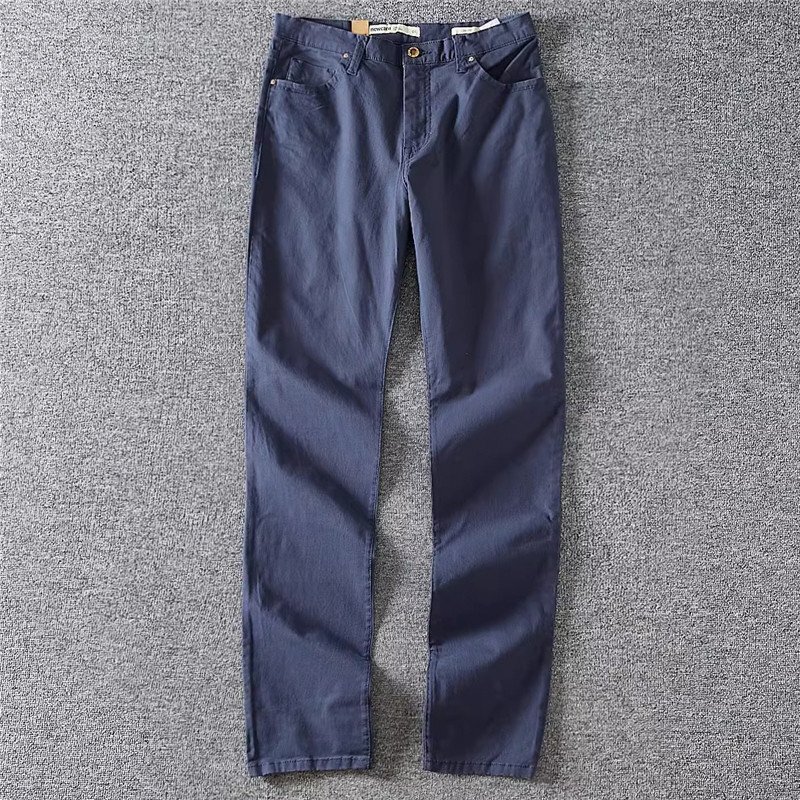 - としわ防止!国内未販売 新品 メンズ スラックス 綿 スリムフィット 伸縮性 快適 ロングパンツ ストレートカジュアルパンツ/紺色T5065-L