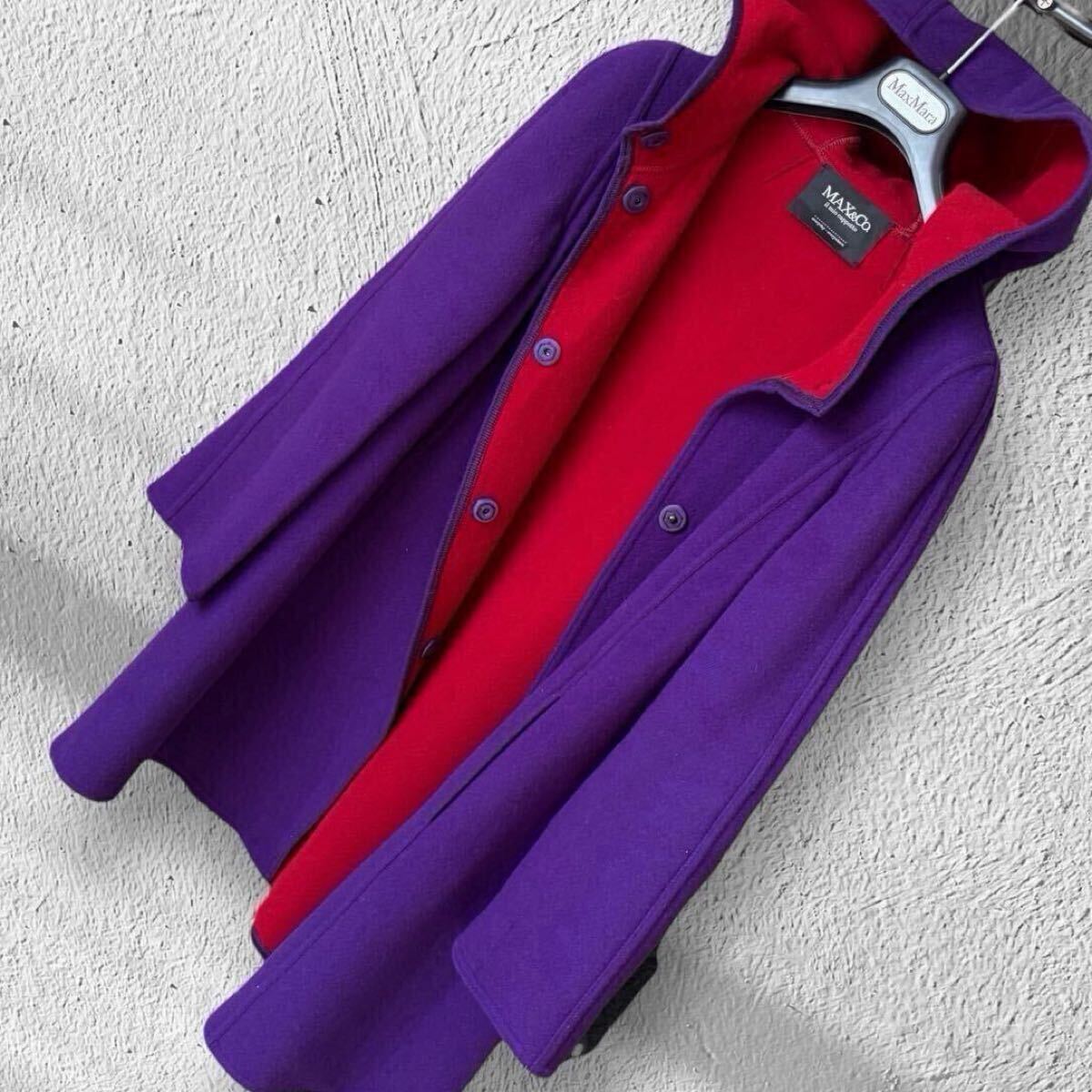 - 超高級希少 一枚仕立て MaxMara ふんわりコート マックスマーラ MAX&Co. マックスアンドコー フーデット コート セレブ上品パープル色 羽織