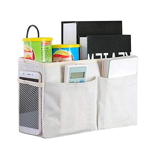 - ホワイト ベッドサイドポケット 吊り下げ収納 鉄骨フレーム 防水麻布製 多機能ベッドサイド収納ラック(入院グッズ/ベビーベッド/寮