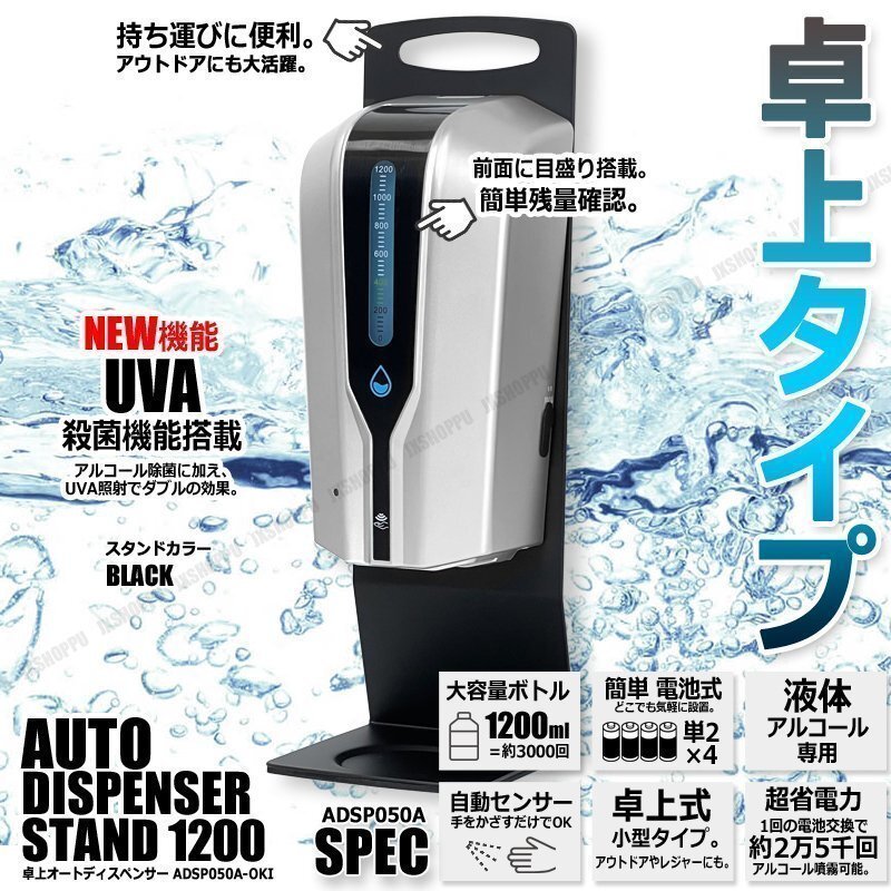 - 送料0円 最新 手をかざすだけ 自動 アルコール噴霧器 卓上タイプ [ブラック] 電池式 ディスペンサー 家 業務用 UVA機能 赤外線センサー
