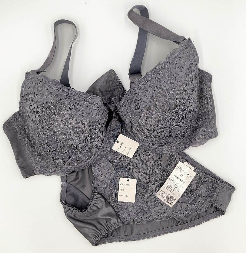 - CR16706 IB⑦【特価】新品 大きい ブラショーツセット F85/LL 1セット グレー レース 花柄 刺繍 3/4カップ ストレッチ レディース