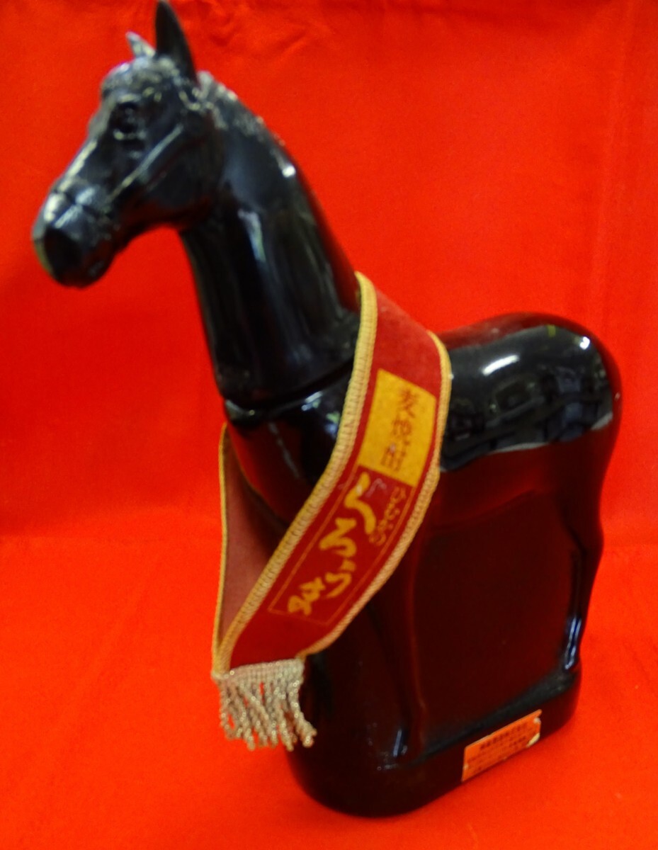 - ・商品名:徳利(ひむろのくろうま麦焼酒)1987ダービー記念・商店名:神楽酒造宮崎県西臼杵群高千穂町岩戸 ・技法:陶器