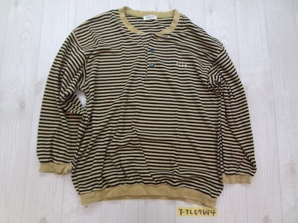 > ELLE エル レディース キッズ ボーダー ハーフボタン 長袖 カットソー 150 マスタード黒