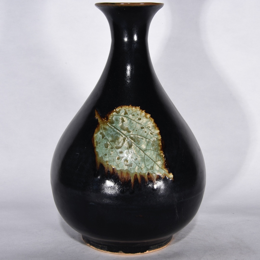 - 旧 清 吉州窯 木葉紋 玉壺春瓶 唐磁 古陶磁器 陶芸 中国古美術 古賞物 古置物 唐物 S711