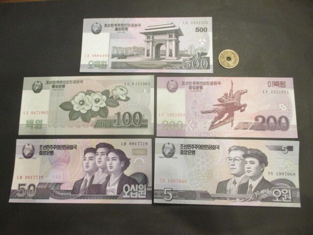 - 未使用 北朝鮮 現行5枚 500~5ウォン