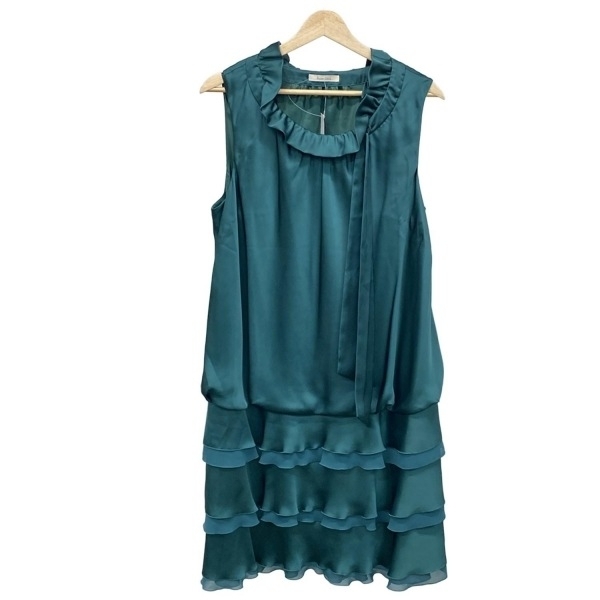 > ローズティアラ Rose Tiara サイズ46 XL - グリーン レディース クルーネック/ノースリーブ/フリル/リボン/ティアードワンピース 美品