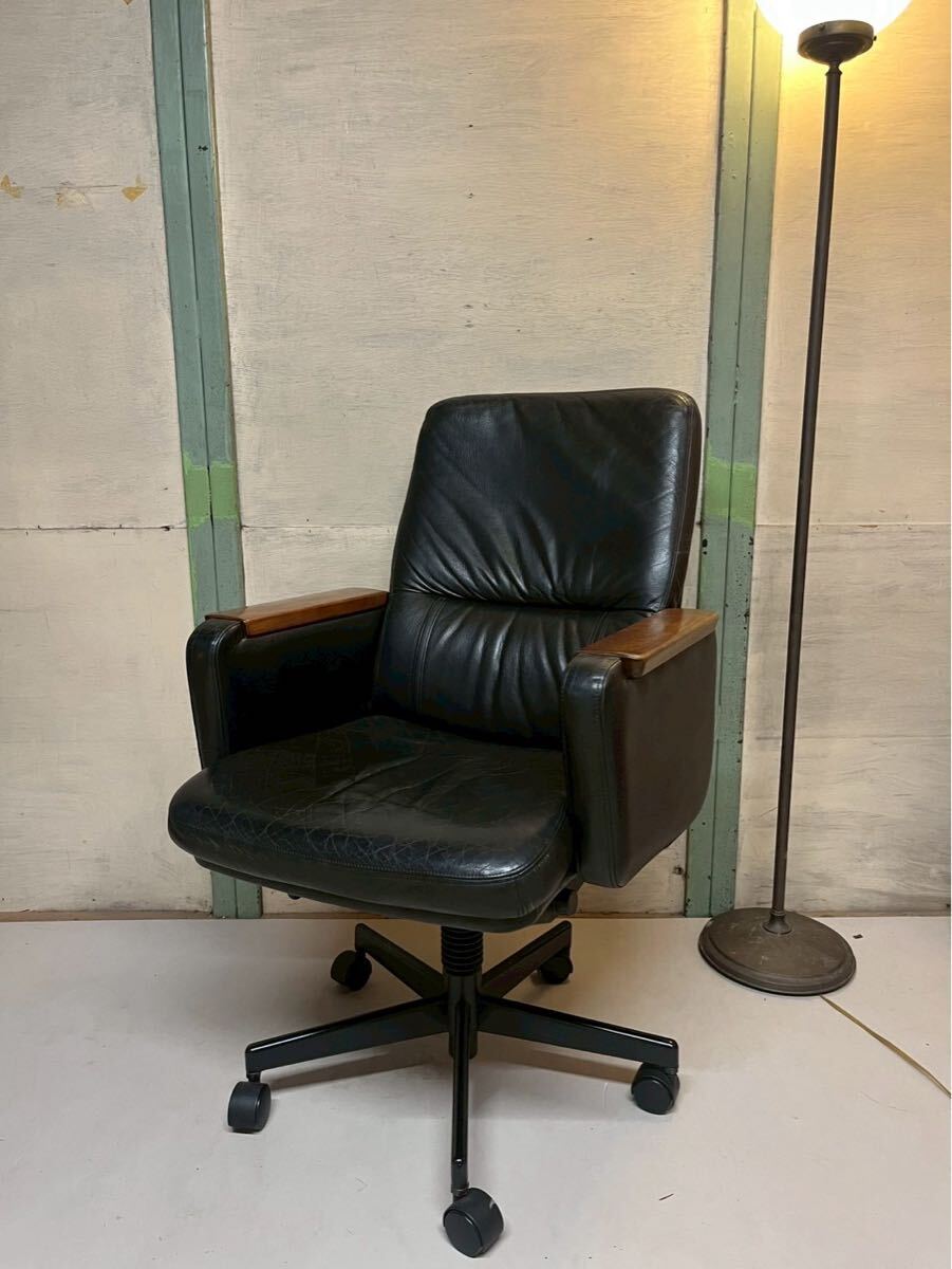 - カリモク 本革 オフィスチェア ブラック エグゼクティブチェア レザー デスクチェア 肘付